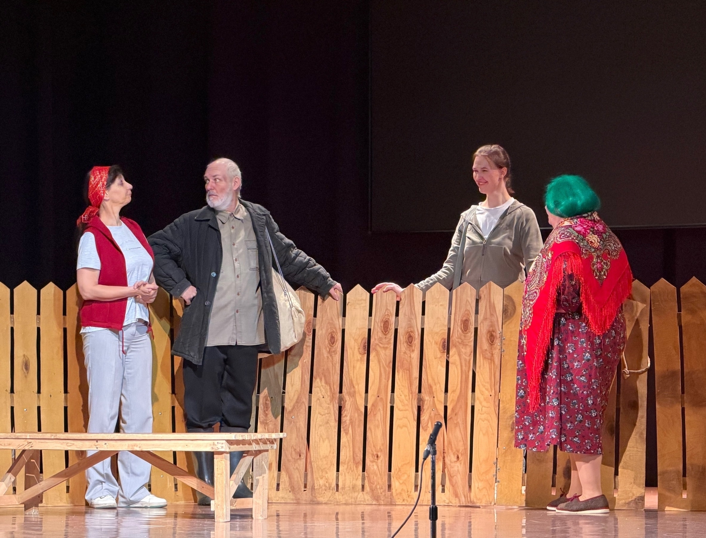 Придя на спектакль в дом культуры "Солнечный" 28 февраля, зрители в очередной раз узнали в героях спектакля своих знакомых, друзей, людей, с которыми их сталкивала жизнь. И люди эти - хорошие. Они умеют трудиться, жить рядом по-доброму и приходить на помощь друг другу. Когда видишь таких людей, то в душе крепнет вера в хорошее будущее и девиз "Жить будем!" становится не только фразой, но глубоким убеждением. Душевность спектакля так наполнила зрителей, что многие поспешили поделиться своими впечатлениями. Среди них отзыв от Заслуженной артистки Республики Татарстан, автора-исполнителя лирических и патриотических песен, члена Союза писателей Флоры Вафиной. Вот что она пишет: "Очень понравилась и сама постановка, и грамотная режиссура, и актерский состав. Искренность актеров восхитила, это как глоток чистой, живой воды". "Жить будем!" и играть будем! Фотографии Валерии Житниковой от 28 февраля 2026 года | |