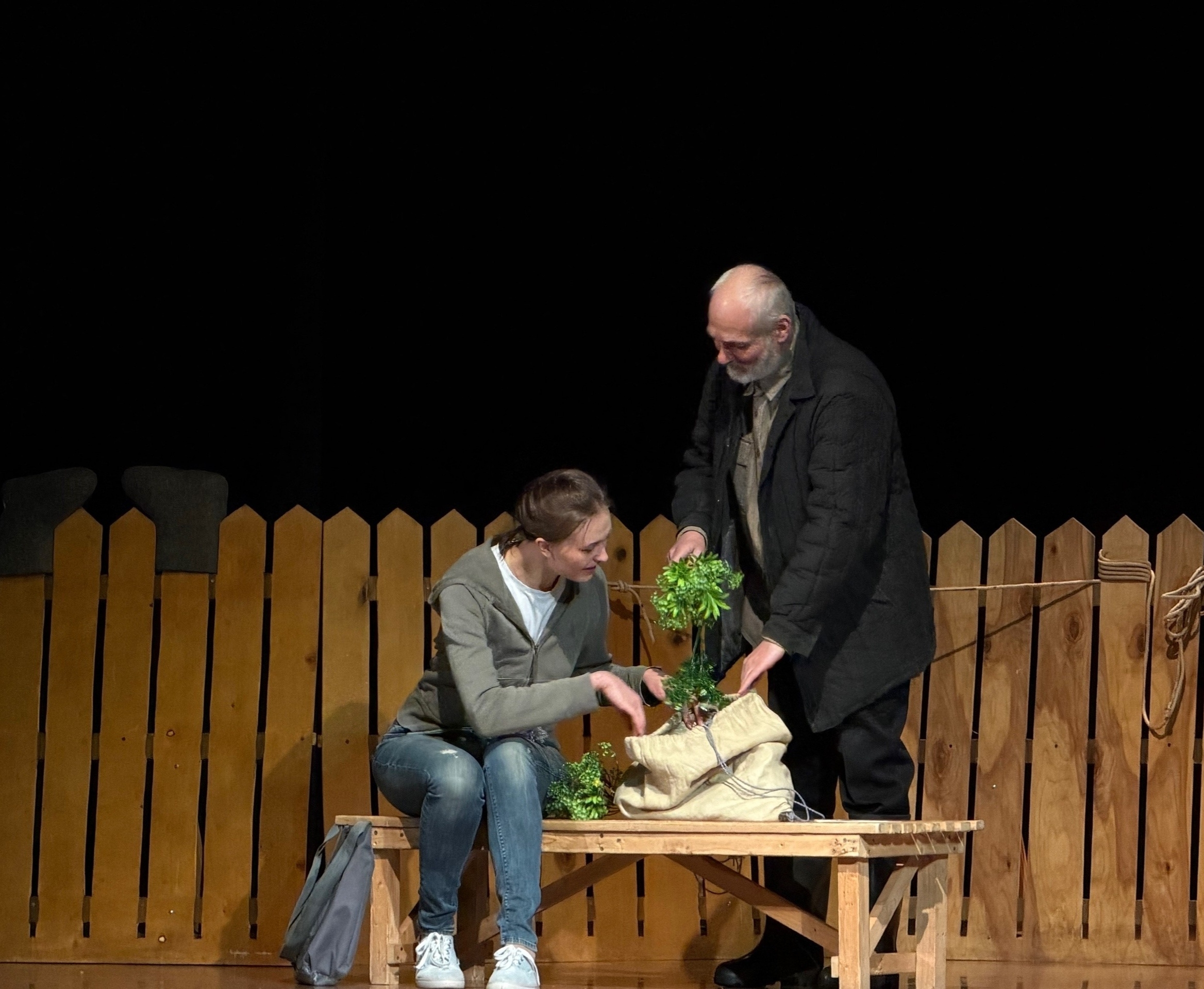В центре сюжета герой Алексея Цымбала - одинокий старик Тихон. За его внимание, дружбу и любовь борятся две возрастные соседки Надя и Вера. Роль Нади бессменно исполняет Дарья Буймова - одна из ведущих актрис Одинцовского Народного театра и... супруга драматурга Эдуарда Иванова. Роль её соперницы Веры в течение долгих лет играла Галина Соловей. Дуэт двух актрис был на редкость колоритным, но в 2024-ом году роль Веры пришлось взять Светлане Лапшиной. Галина Соловей переехала в город Видное... Спектакль, начав свою историю с неприятия фестивальным жюри, стал любимым у зрителя и в последующем добился признания и на фестивалях. В сложном 2020-ом он игрался на фестивале "Театральный Москвич" онлайн, без зрителей. Вместо зрителей на площадку смотрели камеры. Но в это же время шла трансляция на интернет-ресурсах и мы чувствовали "зал". Алексей Цымбал получил приз фестиваля "За лучшую мужскую роль". В том же 2020-ом этим спектаклем театр подтверждал звание "Народного". Играли на комиссию. Подтвердили.
